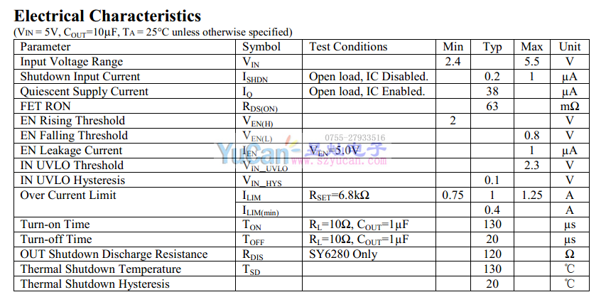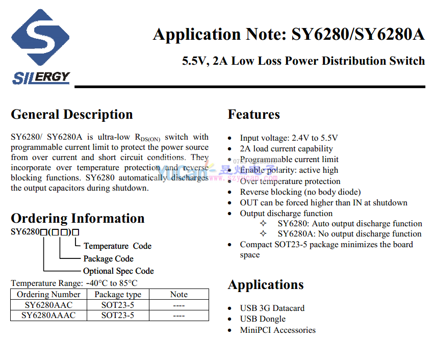 SY6280系列 5.5V, 2A Low Loss Power Distribution Switch 低能耗配電開關(guān),可以通過編程限制電流大小
